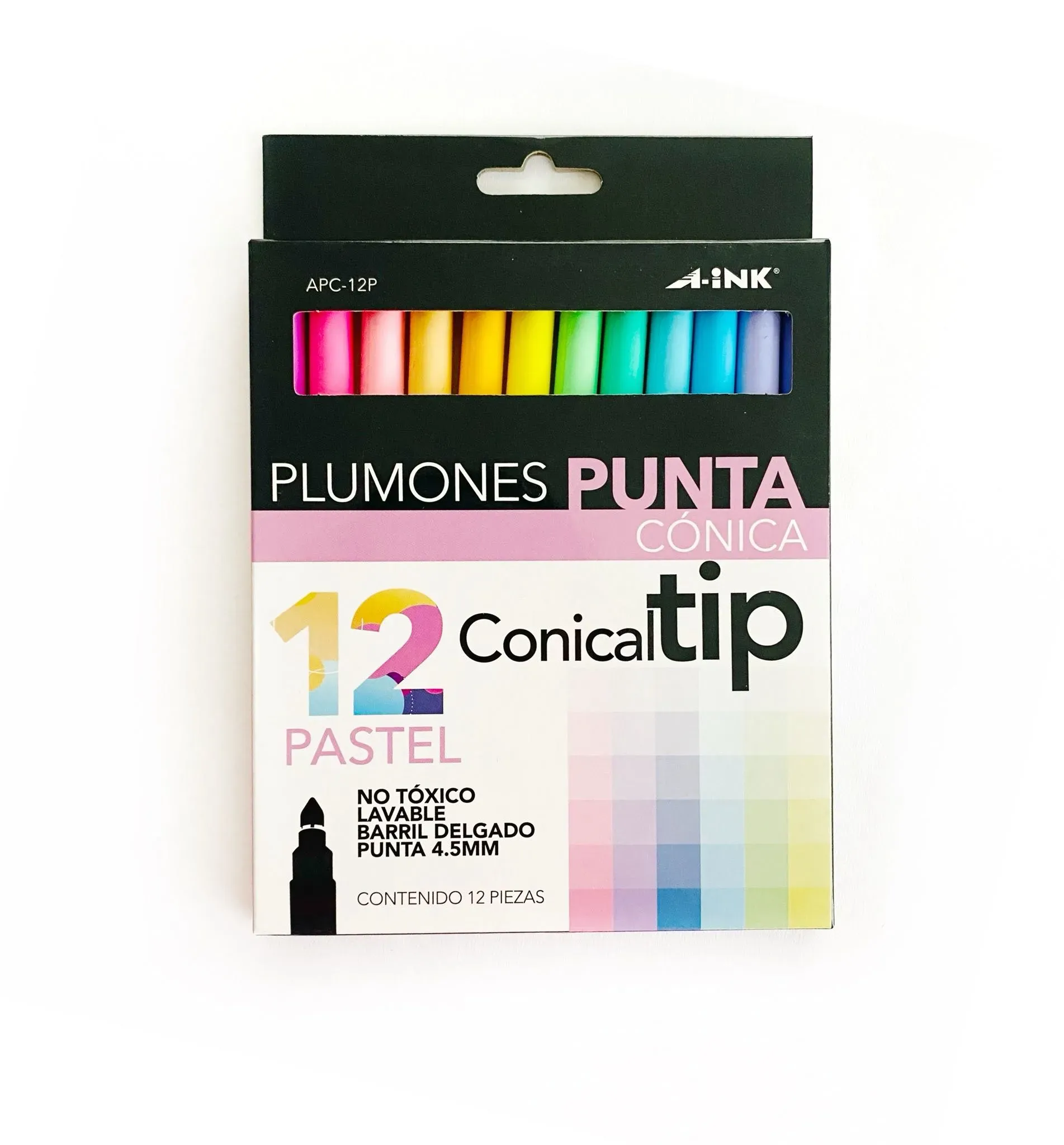 ¡Potencia tu creatividad con los Plumones Punta Cónica Pastel de Aink! Esta caja contiene 12 plumones en colores pastel ideales para lettering, dibujo y más. Disfruta de un dupe espectacular de los supertips para dar vida a tus creaciones con tonos suaves y vibrantes.