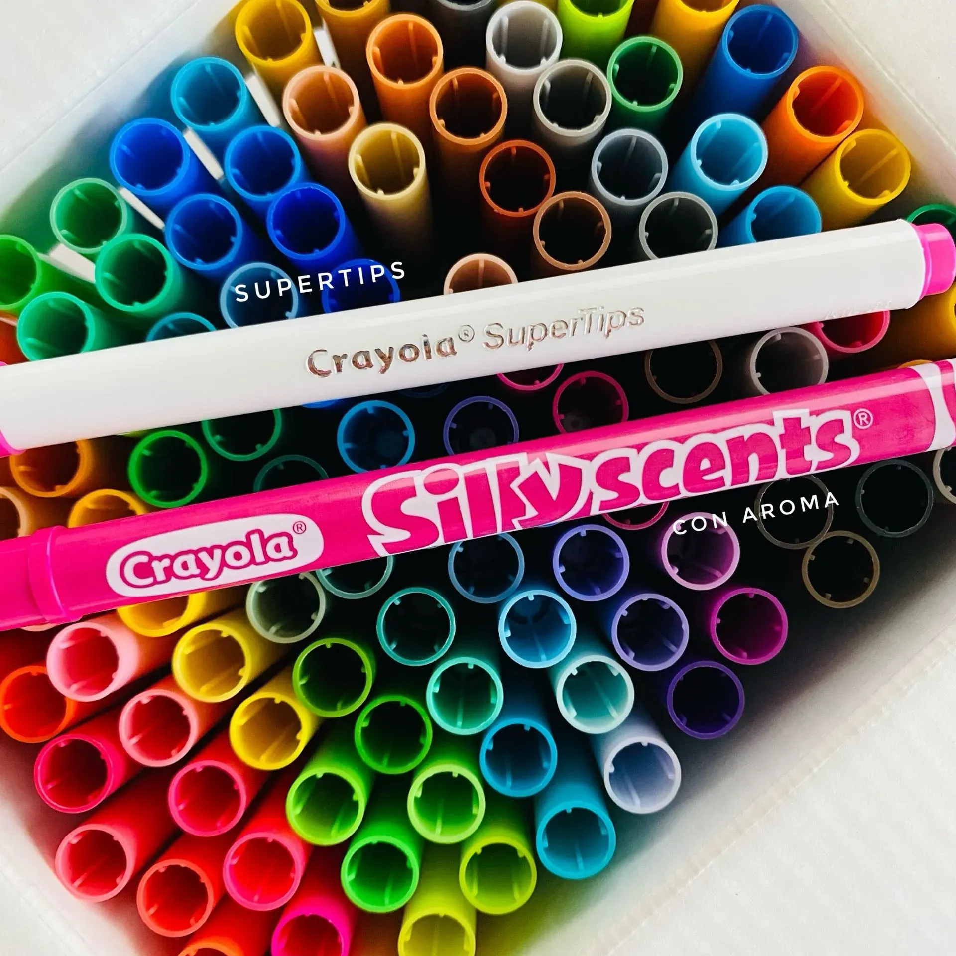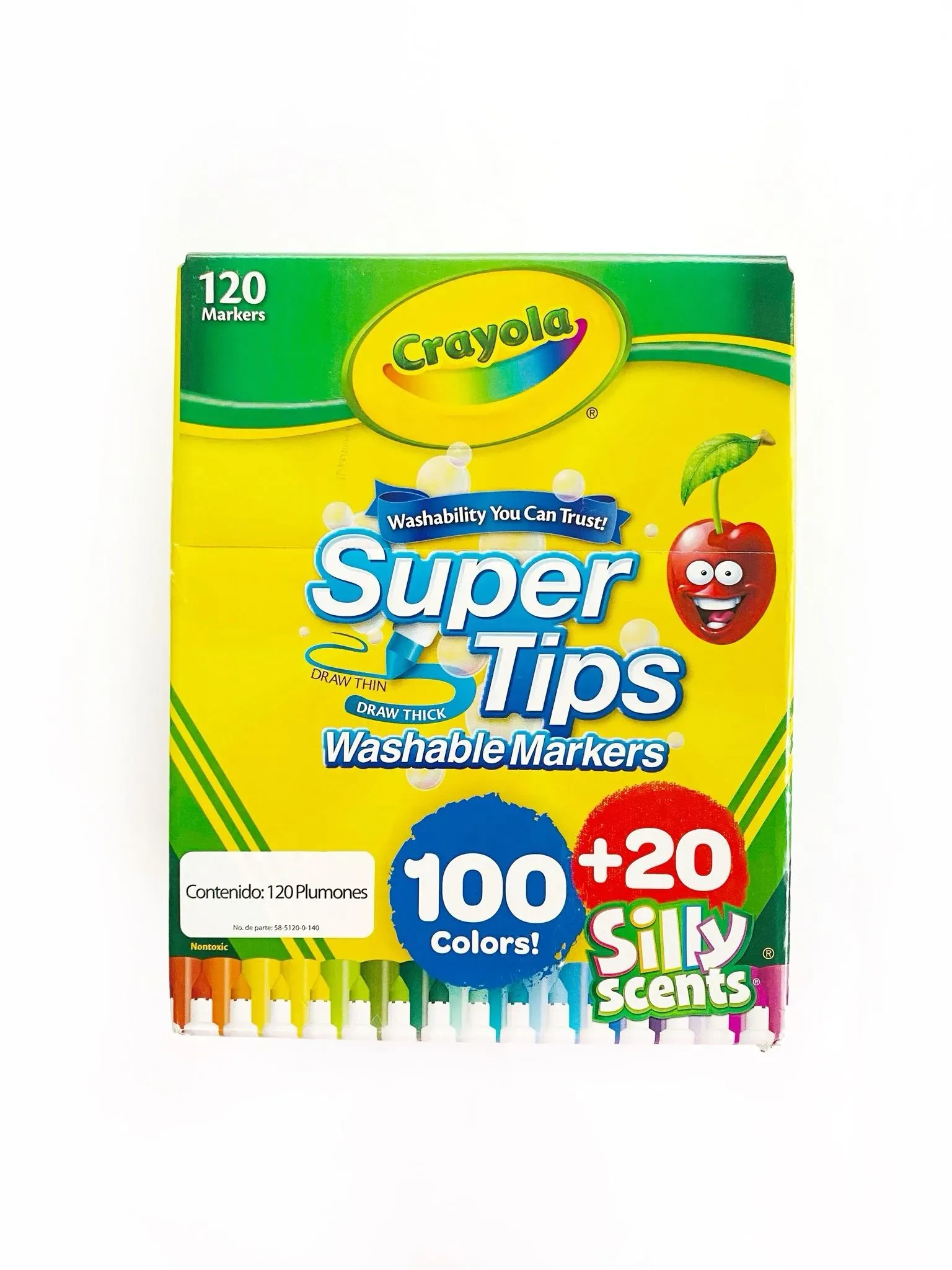 ¡Desata tu creatividad con los Crayola Supertips de 120 piezas! Esta caja incluye 100 plumones con punta cónica y 20 plumones con aroma, perfectos para lettering, caligrafía, dibujo y más. Experimenta colores vibrantes y trazos precisos con esta colección versátil de plumones.