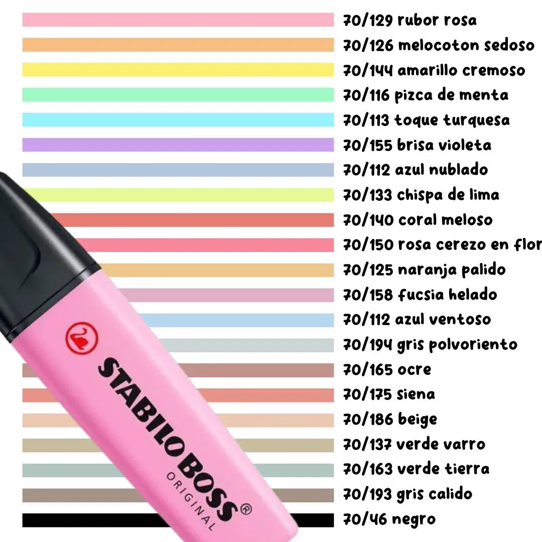 Resalta tus apuntes con el Marcatextos Stabilo en tonos pastel. Disponible de forma individual, elige tu color favorito para darle un toque único a tus documentos. Con su diseño ergonómico y tinta de alta calidad, este marcador es ideal para resaltar con estilo.